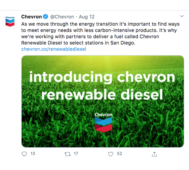 In fact, Chevron had established a renewables business previously, from 2000, but cut its renewables operations back in 2014. The company was reported to have shelved biofuels work in 2010.